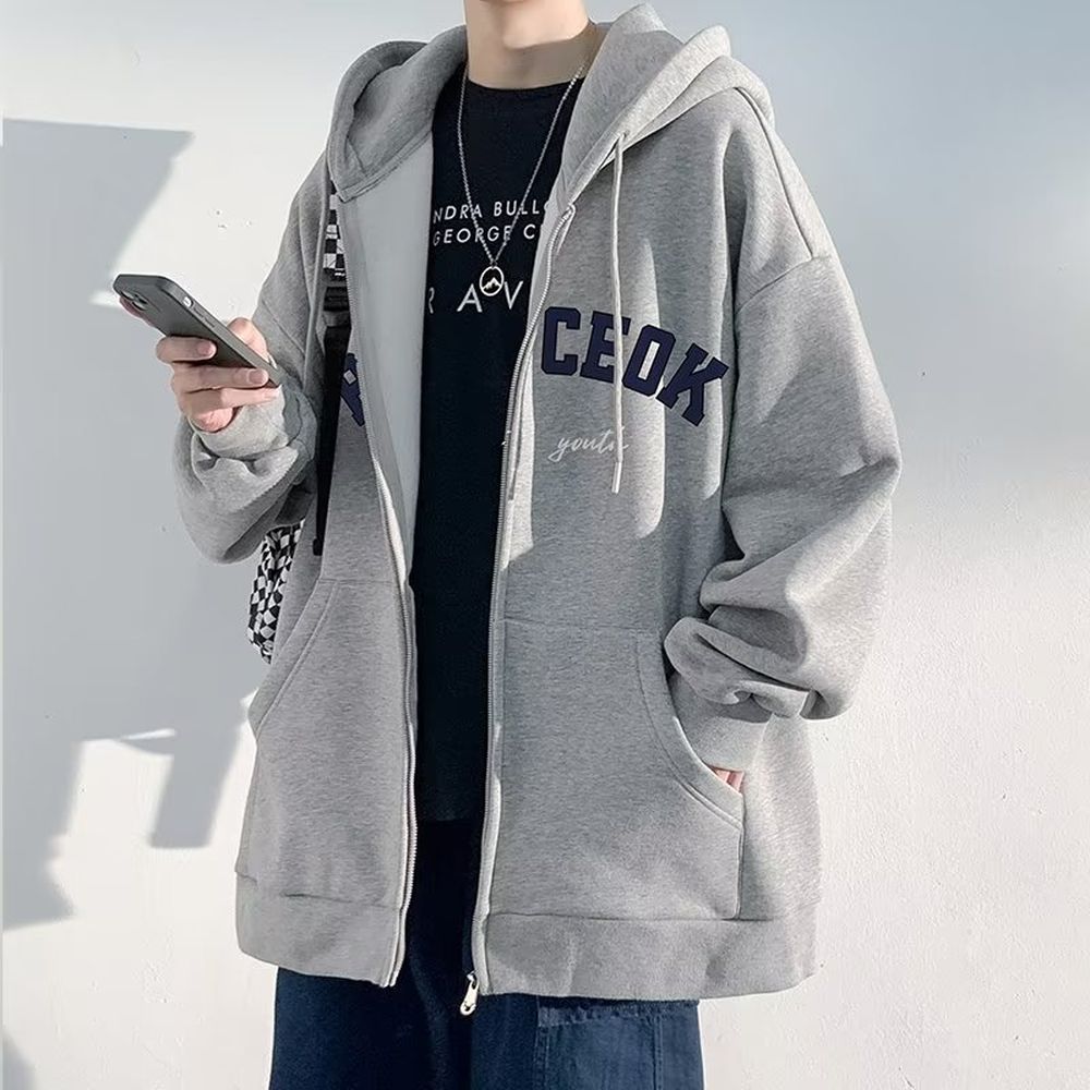 Men's Stand-up Collar Cardigan Jacket Loose-fitting Casual Hoodie