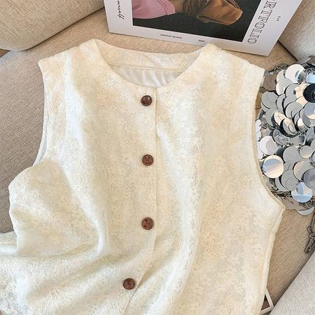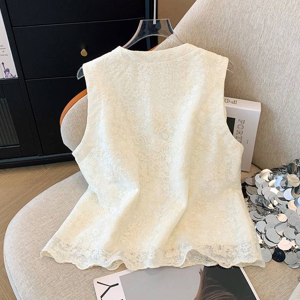 French Temperament Lace Single Breasted Sleeveless Vest Women's Top