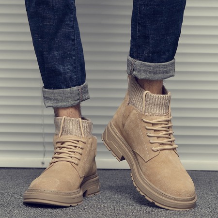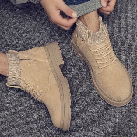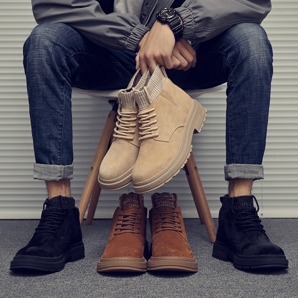 Men's Autumn and Winter New High-Top Cotton Shoes Mens Leather Martin Boots Casual Short Boots