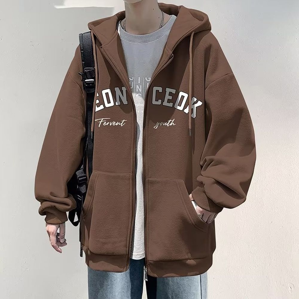 Men's Stand-up Collar Cardigan Jacket Loose-fitting Casual Hoodie