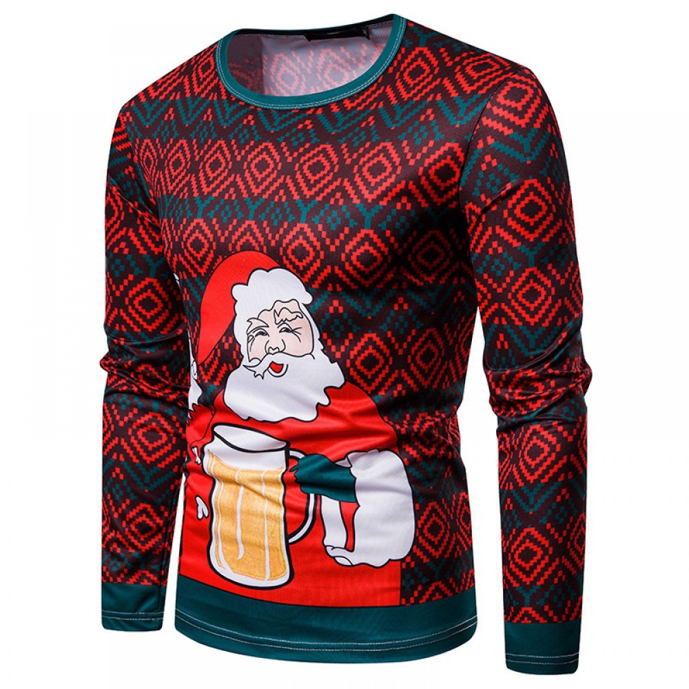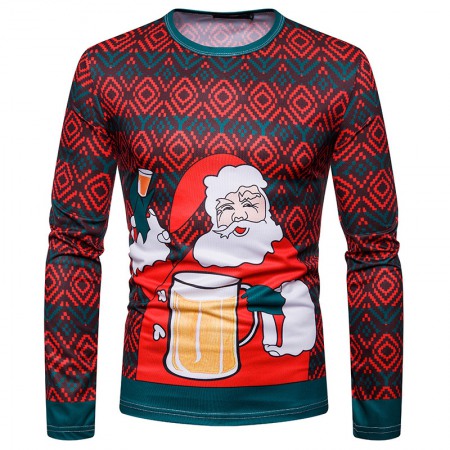 Autumn and Winter New Men's Fashion Santa Claus Hand-Held Color Stick Printing 3D Long-Sleeved T-Shirt