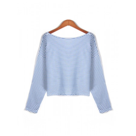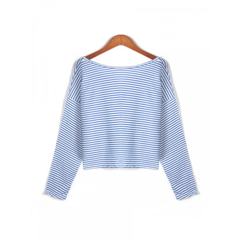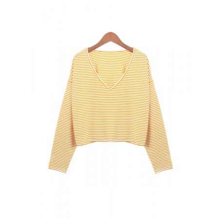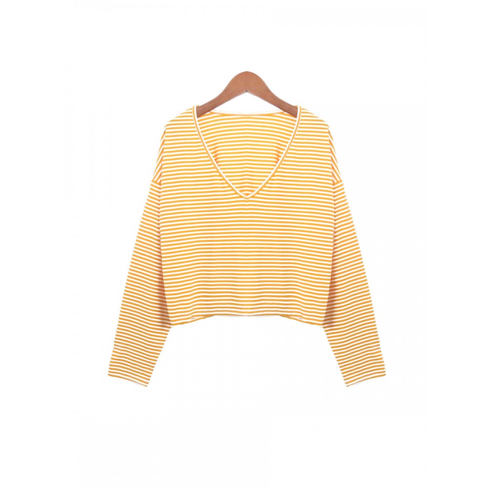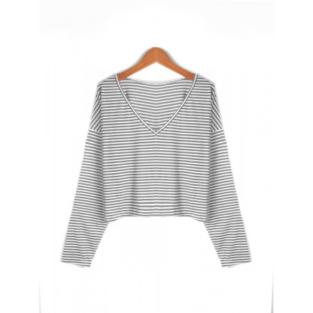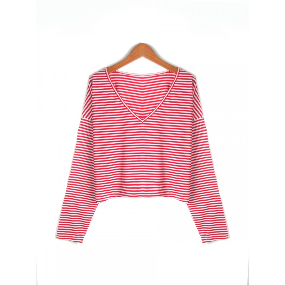 New Style V-Neck Loose Striped Long-Sleeved T-Shirt