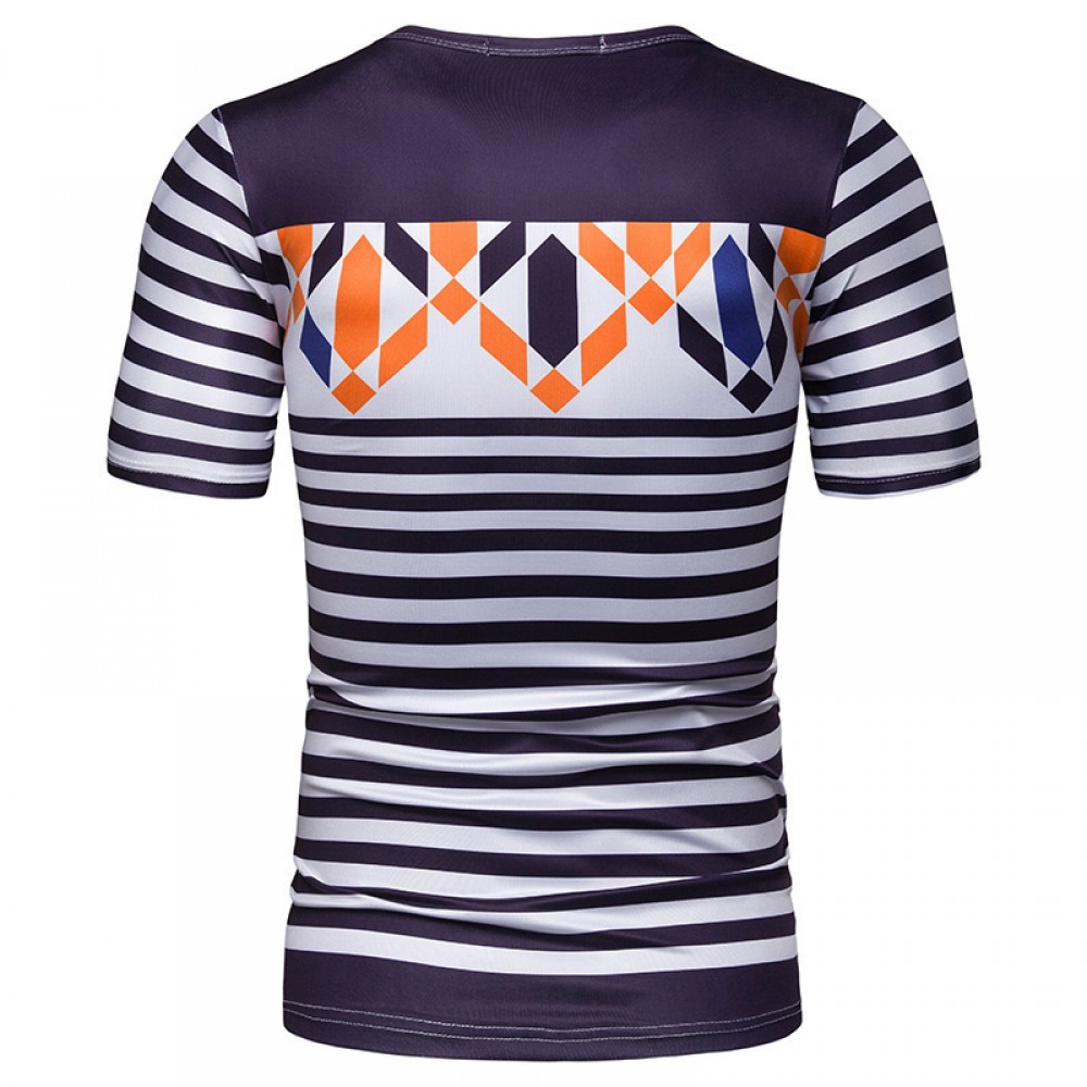 New Style Flat Men's Fashion Large Size Striped Short Sleeve T-Shirt
