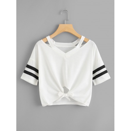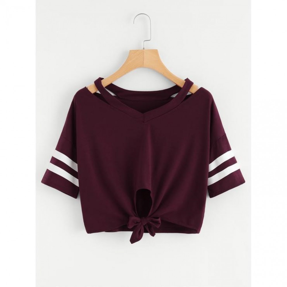 Spring New Hot Sale Striped Round Neck Tie T-Shirt